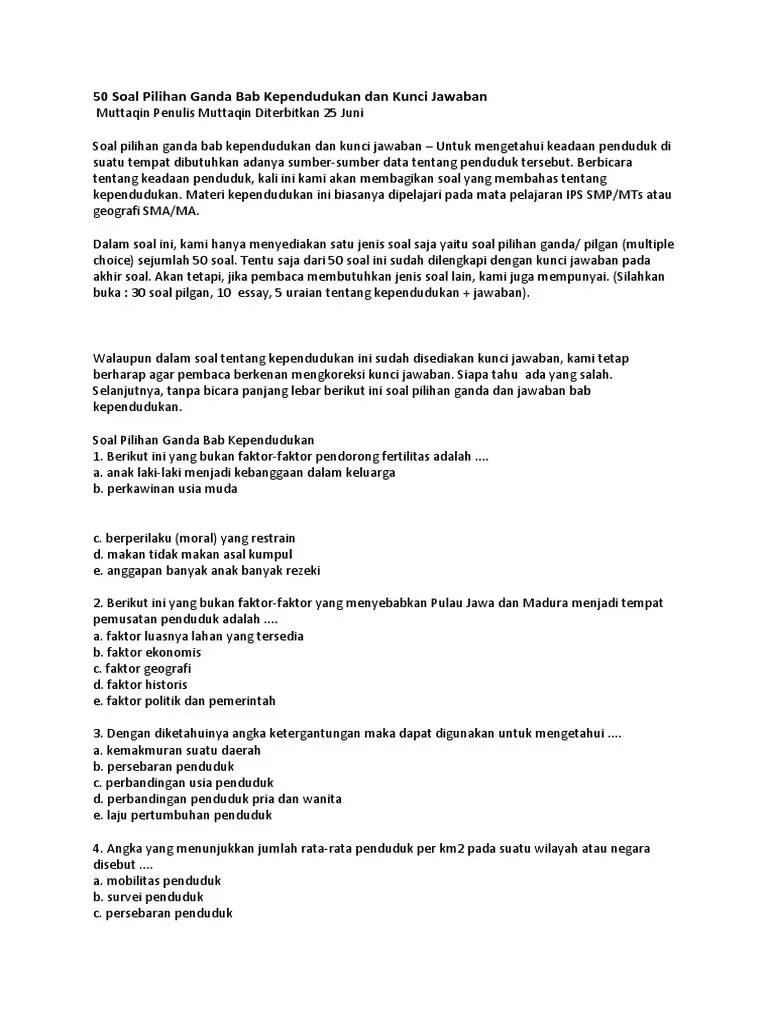 Soal berikut terdiri dari 20 soal pilihan ganda berserta kunci jawabannya.